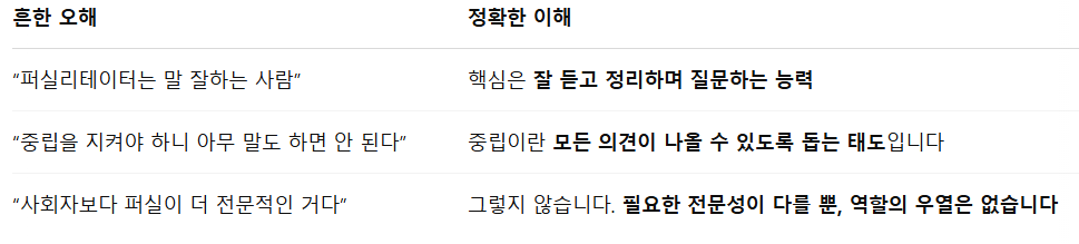 🔍 사회자와 퍼실리테이터는 어떻게 다를까? 📌 실무에서의 사례 비교 🧠 둘 다 필요한 자리도 있다 💬 오해하지 말아야 할 것